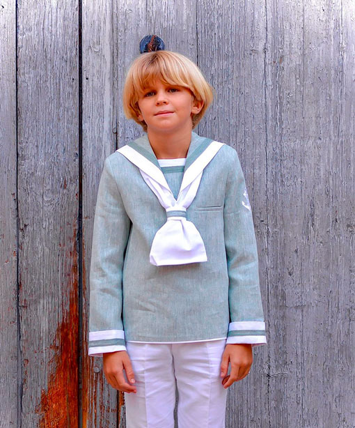 Traje de marinero  de lino tratado, en verde con blanco.