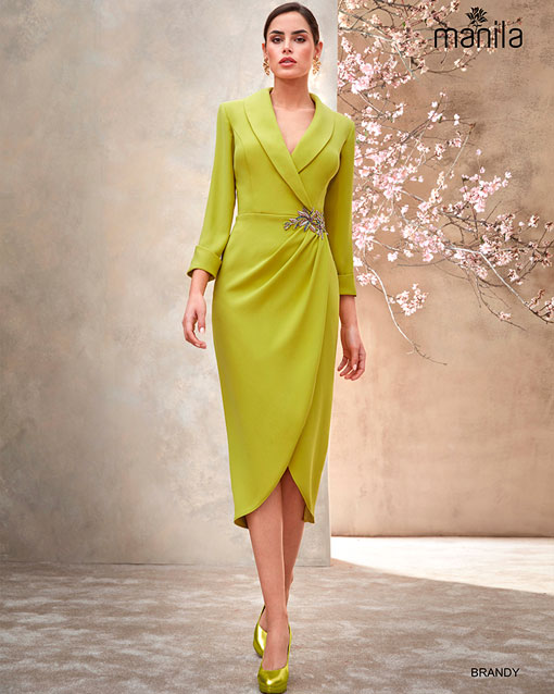 Vestido en creppe , largo middi , disponible en color azul empolvado.