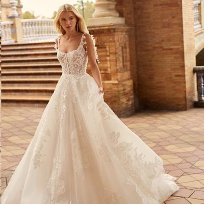 En la Colección más pura encontramos vestidos de corte princesa con faldas de tul o mikado de gran volumen, con cuerpos preciosos de tirantes y con escotes sensuales, además de vestidos en corte A y vestidos ceñidos al cuerpo, muy favorecedores.